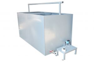 Представляет из себя резервуар, наполняемый водой с помощью проведенной к нему линии водопровода. Обеспечивает охлаждение производимого рубероида до необходимой температуры. Данное устройство способно увеличить производительность линии, а также повысить качество выпускаемого материала.